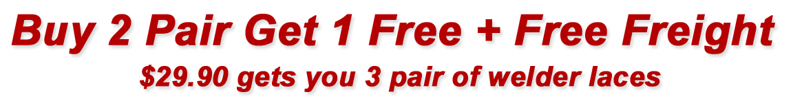 The welder lace concept came about because for the past 28 years we have been in the work boot business. Our customers treat their foot wear as critical equipment. Many return regularly because they appreciate the quality of our products. Boot laces wear out quickly to begin with, let alone exposing them to sparks, welding slag, or abrasive materials. (Think cement dust)